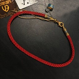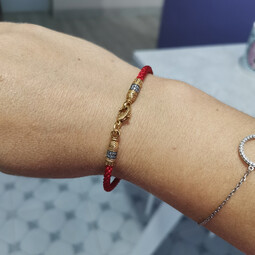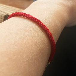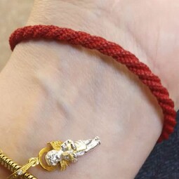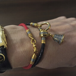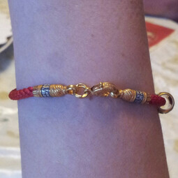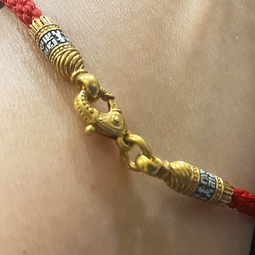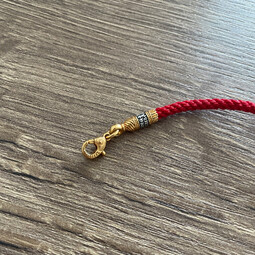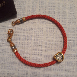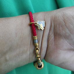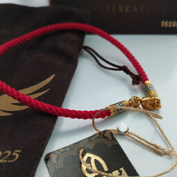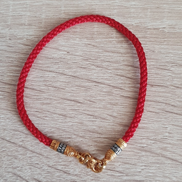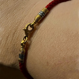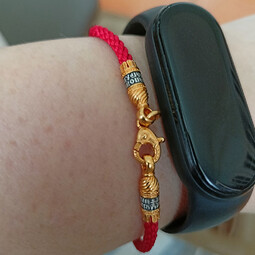 Текстильный плетеный браслет ручной работы. На его концах - специальные серебряные с позолотой зажимы в форме куполов. На них написаны слова – обращения к Богу. Замком служит съемный карабин.