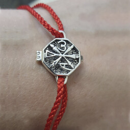 На лицевой части находится Хризма - древний символ Спасителя. Длина браслета регулируется от 17 до 24 см.