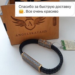 Кожаный браслет, выполненный прочным плетением, исключающим разрывы и деформации. На основу закреплена широкая несъемная пластина, на которую нанесены слова 116 Псалма. Это самая короткая молитва. Она восхваляет Бога во всех его проявлениях и содержит призыв верующим поклоняться Всевышнему за его милости.