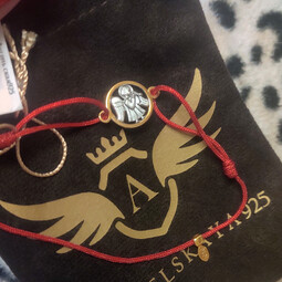 На текстильном браслете находится подвеска в виде Ангела - Хранителя из серебра 925 пробы с позолотой. Он появляется у любого человека при крещении и сопровождает его в течении всей жизни, оберегая от всякого зла и наставляя своей мудростью и советами.