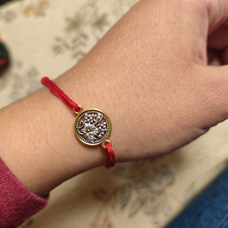 Православный браслет с подвеской «Виноградная лоза» | 500303kl_red | Серебро 925 пробы, позолота, текстиль