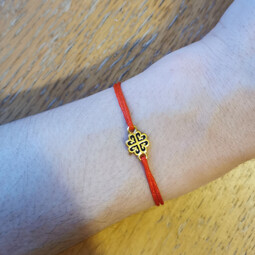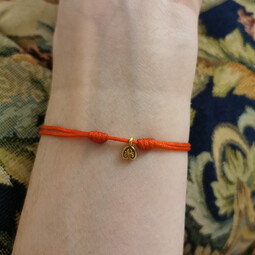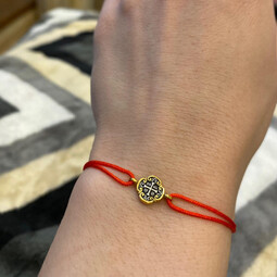 На текстильном браслете находится подвеска из серебра 925 пробы с позолотой с изображение равностороннего креста - главного символа православия, которые так же означает гармонию и завершенность мира. По сторонам его находятся инициалы Иисуса Христа и слово "ника" - победа над смертью.