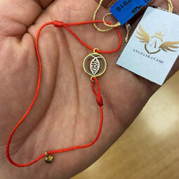 Православный браслет с подвеской «Рыба» | 500316kl_red | Серебро 925 пробы, позолота, текстиль