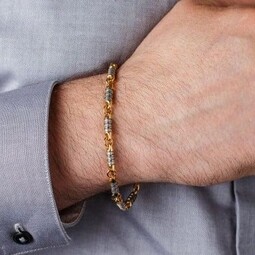 Позолота на звеньях придает яркости браслету и подчеркивает важность текста.