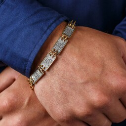 Между собой пластины скрепляются небольшими парными колечками, покрытыми позолотой. Это зрительно облегчает конструкцию браслета и, поэтому, его можно носить как мужчинам, так и женщинам.