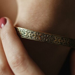 Серебряный браслет в форме обруча, который отделан позолотой.  Лицевая сторона браслета заполнена изящным византийским орнаментом, а внутри написаны священные слова, которые складываются в молитву «Отче наш». Она читается как в случае опасности, для защиты от злых духов и темных сил, так и используется как благословение в любых делах.