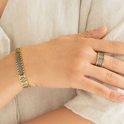 Массивный серебряный браслет позолоченной отделкой, эмалевой росписью и фианитами, вставленными по контуру браслета.  На центральном звене браслета написан текст 22 Псалма. Верующие читают его в любой ситуации. Он помогает справиться человеку с трудностями, жизненными неурядицами и проблемами. На остальных звеньях изображена Хризма- древнейший символ Христа. Она составлена из греческих букв, с которых начинается его имя.