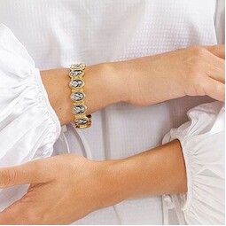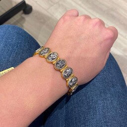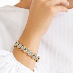 Женский браслет, в каждом звене которого изображены Святые жены. Они подобраны для этого изделия неспроста, ведь согласна Богу, миссия женщин - быть хранительницами дома, своего очага. А Святые помогают им в этом, дарят женщинам свою силу, мудрость через молитвы, обращенные к ним.