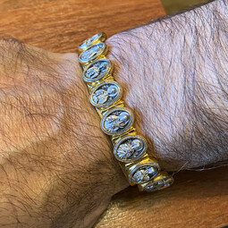 Святые изображены серебром на черненом фоне в изящных овалах. Это придает браслету дополнительное изящество.