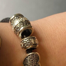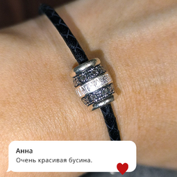 Серебряная бусина с молитвой на черненом корпусе. Молитва взята из 26 псалма. Она считается одной из самых сильных защитных молитв от любого проявления зла, от жизненных проблем и от проблем со здоровьем.