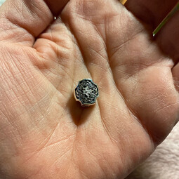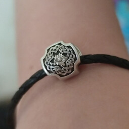 Серебряная бусина с позолотой необычной формы, на одной из граней которой нарисован прекрасный шестикрылый Серафим. Он - ангел, находящийся ближе всех к Богу. Считается, что Серафимы могут опалять огнем злых духов, нечистоту и все остальное, что может нанести вред человеку.