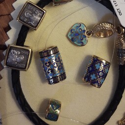 Остальные грани бусины украшены эмалевой росписью в византийском стиле с растительными орнаментами.