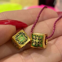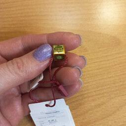 Квадратная бусина из серебра с позолотой и эмалевой росписью. На одной из сторон – образ «Святой Блаженной Матроны Московской». У нее просят покровительства как в делах семейных, так и исцеления от болезней. До сих пор продолжают случаться чудеса с ее помощью.