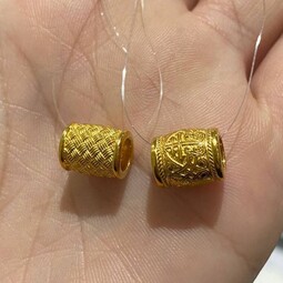 Серебряная бусина, покрытая позолотой и украшенная плетеным узором. С древних времен он ассоциируется у нас с домом, уютом и надежностью.  Часто так украшают храмы и церкви, одежду и ювелирные изделия.