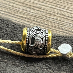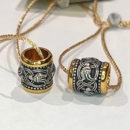 Серебряная бусина с позолоченной отделкой и орнаментом в виде птиц, которые символизируют души верующих, попавших в Небесное царство. О тех, кто попал в Небесное царство, можно сказать, что это спасенные души.