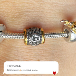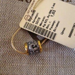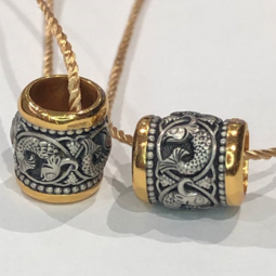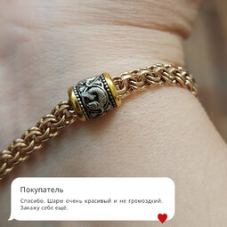 Серебряная бусина, корпус которой украшает орнамент из заплетенных рыб и виноградной лозы. Эти два знака с древних времен являлись обозначениями Христа, его учеников и последователей.