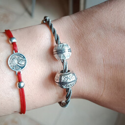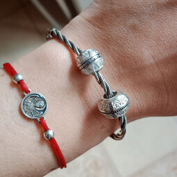 На бусине из серебра 925 пробы размещены слова из молитвы "Живый в помощи". Эти строки принято читать для освобождения от дурных, плохих помыслов и желаний, если хочется совершить поступок, который способен навредить.