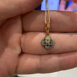 Серебряная подвеска изящной, округлой формы, которая украшена позолотой и эмалевой росписью. В ее центре - равносторонний крест. Такой крест - символ победы и процветания, а равная длина его планок означает равенство небесного и земного мира.