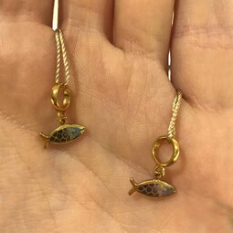 Серебряная бусина в виде рыбки - древнейшего символического обозначения Христа. Так Его изображали первые христиане. Кроме того, с рыбами связывают учеников Иисуса и просветителей, которые были рыбаками и «вылавливали» человеческие души из морских пучин.