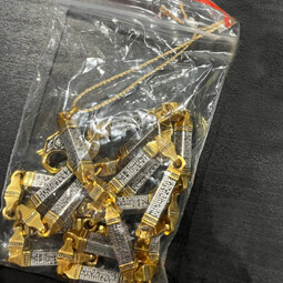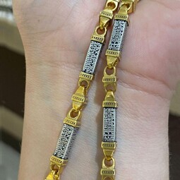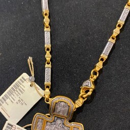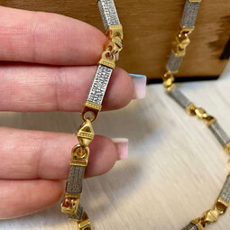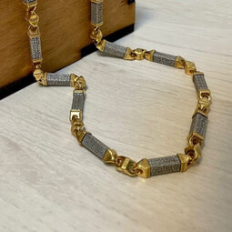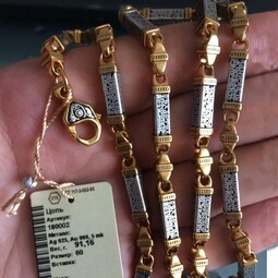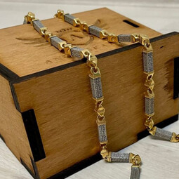 Серебряная цепь с позолоченной отделкой, состоящая из объемных звеньев геометрической формы. На каждом из них написана «Предначинательная молитва», которую можно читать как защитную в сложных и опасных ситуациях, так и помогающую в любых делах.