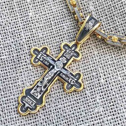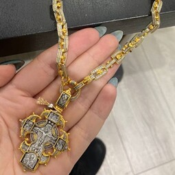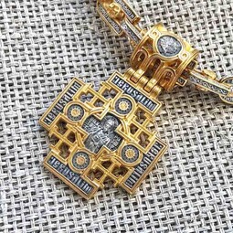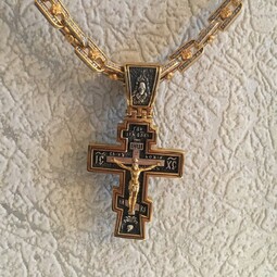 Серебряная цепь с позолоченной отделкой, состоящая из объемных звеньев в виде подков.  В них вставлена вращающаяся вставка - Крест. По звену идет молитва "Господи, спаси и сохрани мя",  которой просят у Всевышнего защиты и помощи.