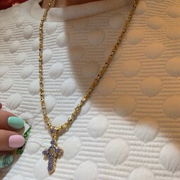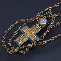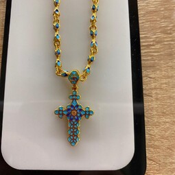 Православная цепь «ТЮЛЬПАН» | 04_086_blue | Серебро 960 пробы с позолотой, эмаль