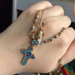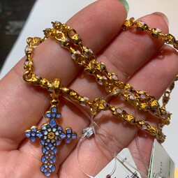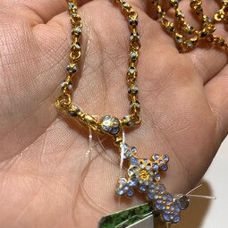 Великолепная цепочка. Эмаль со стороны выглядит, как камень в форме лепестка синего цвета. Раньше такого не видела, по этому очень впечатлило.