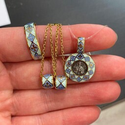 Николай Чудотворец, изображенный на подвеске, считается покровителем путешественников, мореплавателей, купцов и детей. К нему обращаются с просьбами об исцелении, при проблемах со здоровьем и для развития своего дела или бизнеса. Так же молитва к нему может помочь найти свою вторую половинку и заключить хороший брак, справиться с семйными неурядицами. Орнамент на образке украшен эмалью и позолотой.