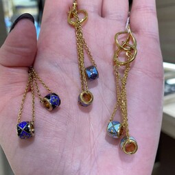 Серьги выполнены из серебра 925 пробы с позолотой. Каждое украшение выполнено в гармоничной цветовой гамме.