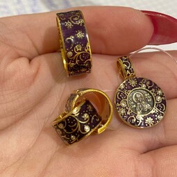 Серьги тоже выполнены из серебра 925 пробы. Каждое украшение снабжено фианитами и выполнено в единой цветовой гамме.