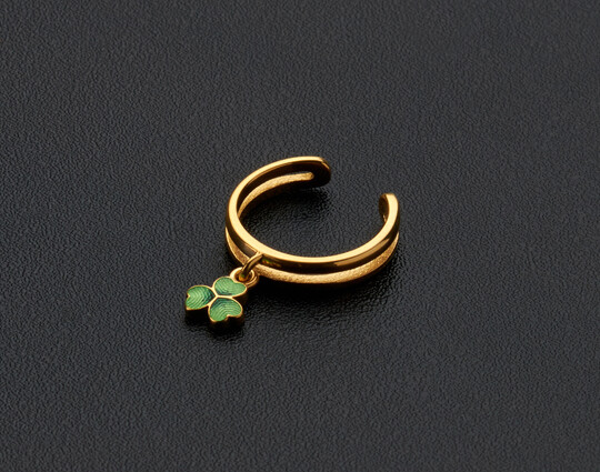 Православное миниатюрное кольцо из серебра 925 пробы с позолотой и эмалью на подвеске в виде клевера. Это символизирует Святую Троицу и ее единство, которое проявляется в заботе об устройстве мира. Каждый лепесток клевера словно напоминает о том, что все ипостаси Бога неотделимы друг от друга.