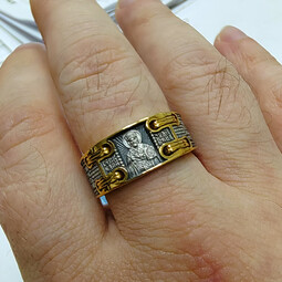 Православное серебряное мужское кольцо с образом Николая Чудотворца и словами молитвы: