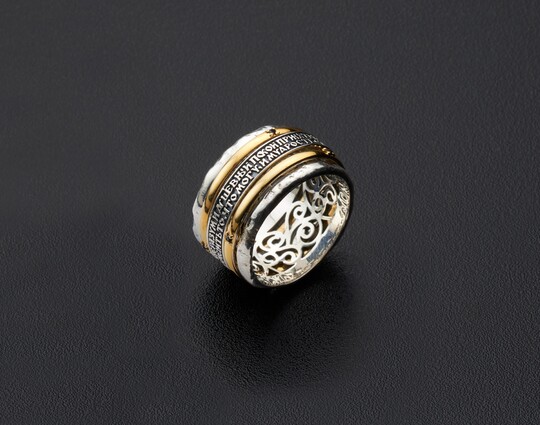 Православное кольцо из серебра 925 пробы имеет подвижные части. На нем находятся слова из молитвы «Душевный покой». Состояние гармонии и душевного комфорта очень важно для каждого человека. В повседневной реальности человеку часто встречаются различные раздражители и трудности. В такие моменты на помощь придет колечко, покручивание которого способно успокоить в минуты смятения и стресса.
