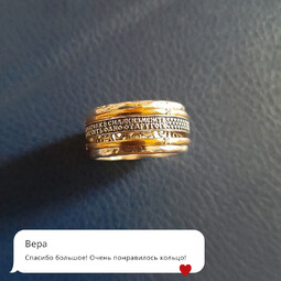 Сегодня подарила своей любимой подруге на юбилей такое кольцо. Очень понравилось, думаю, будет носить с удовольствием! Спасибо, что помогли сделать приятный и памятный подарок.