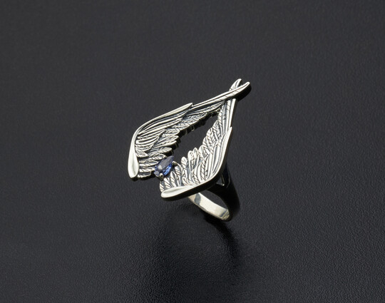 Православное кольцо Крылья Ангела | b_ko_630_fianit_blue | Серебро 925 пробы