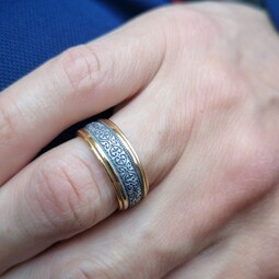 Получил сегодня кольцо. Оно действительно красивое. Необычный орнамент, великолепное сочетание цвета позолоты с чернёным серебром. Мастерам спасибо и магазин замечательный.
