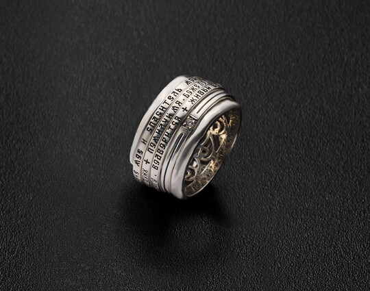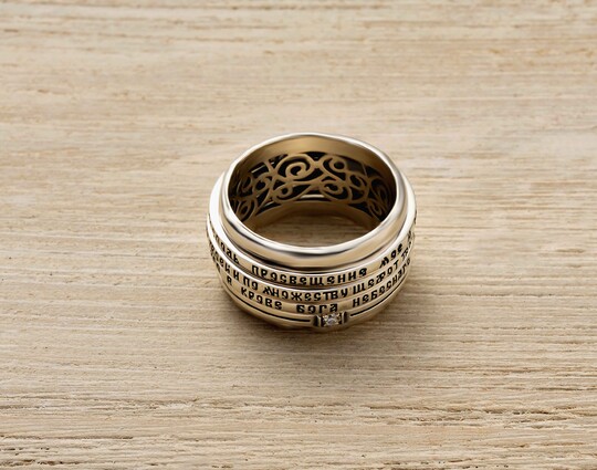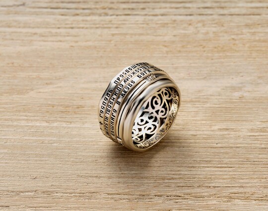 На поверхности кольца выгравированы три Псалма - 90, 50 и 26. Их читают для укрепления веры, избавления от страхов, очищения души и защиты от всякого зла.