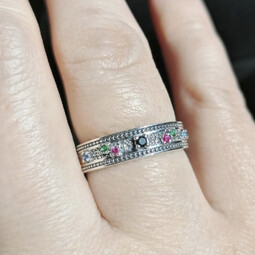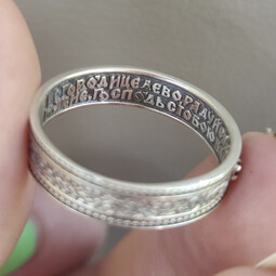 Кольцо с молитвой Пресвятой Богородице будет постоянным напоминанием о необходимости молитвы к Владычеце нашей и о милости Ее к нам. На поверхности есть вставки с фианитами.