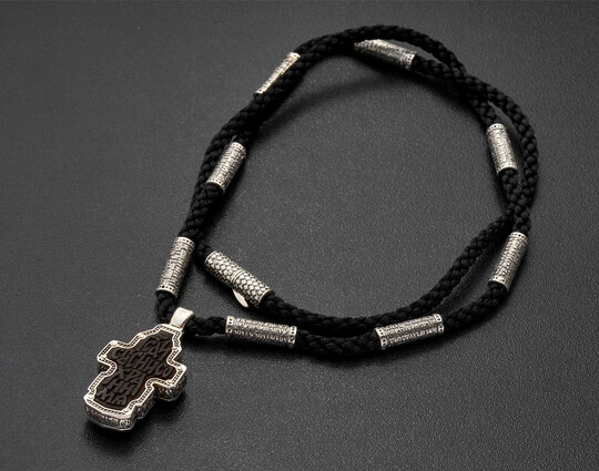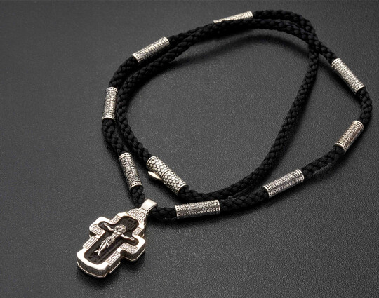 В комплекте с крестиком идет гипоаллергенный текстильный гайтан из высококачественных полиэфирных волокон и бусинами с полным текстом псалма "Живый в помощи Всевышнего".