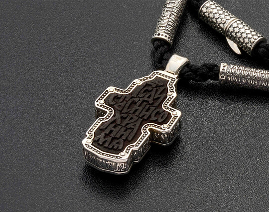По периметру креста выгравированы слова: «Огради меня, Господи, силою Честного и Животворящего Твоего Креста, и сохрани меня от всякого зла».