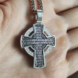 На обороте креста - начальные слова из оградительной молитвы. Она читается в опасных ситуациях, когда сложно справиться без Божией помощи.