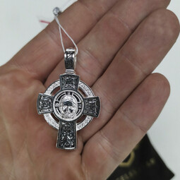 Серебряный крест с изображением Нерукотворного образа Иисуса Христа, который считается у православных самой сильной защитой от всех возможных неприятностей как духовного, так и материального плана.