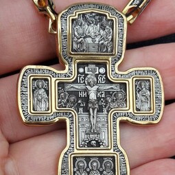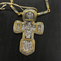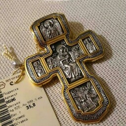 Крест Распятие Христово, Святая Троица, Николай Чудотворец, Мч. Трифон | 8596 | Серебро 925 пробы с позолотой