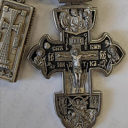 На ухе креста изображена самая главная святыня всех православных - Спас Нерукотворный. Считается, что он самый мощный защитный символ Христа, который способен уберечь от темных сил, злых духов и прочих жизненных неприятностей.