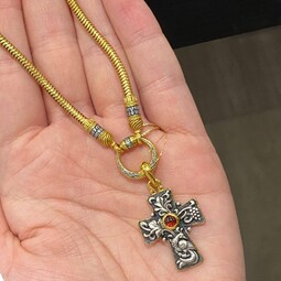 Крест, гранат (кабошон) | 837_pz | Серебро 925 пробы с позолотой