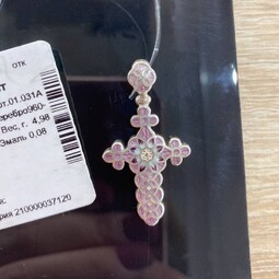 Крест с цветком лилии, розовая эмаль | 01_031A_pink | Серебро 925 пробы, эмаль