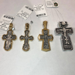 В нашей коллекции есть небольшие крестики и образки, которые отлично подойдут деткам, эти изделия можно выбрать в фильтре, указав "для детей". К ним подойдут тонкие цепочки "снейк" или кожаные шнурки.