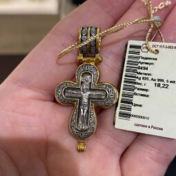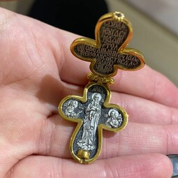 Мощевик с Распятием и Валаамской иконой Божией Матери | 8494 | Серебро 925 пробы с позолотой