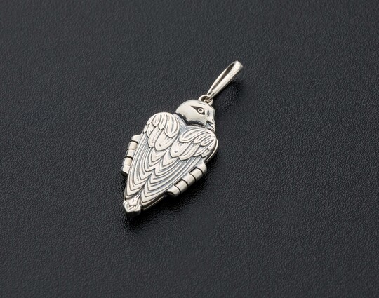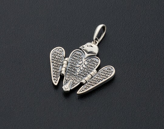 Православная подвеска из серебра в виде птицы. Своими крыльями она бережно скрывает от посторонних глаз молитву о детях. Это украшение является символом бесконечной материнской заботы и веры в защиту и направление  детей к доброте и истине.