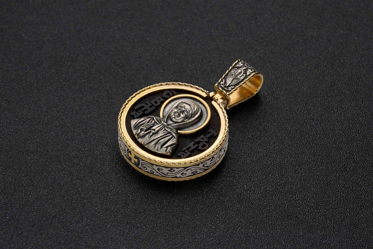 Православная подвеска из серебра 925 пробы с образом Матронушки. Основа образка выполнена из дерева, а образ святителя вписан в изящный серебряный контур. Деревянная часть воспринимается как напоминание о Животворящем Кресте. Это как источник боли и страданий для Христа, так и спасение для любого верующего.